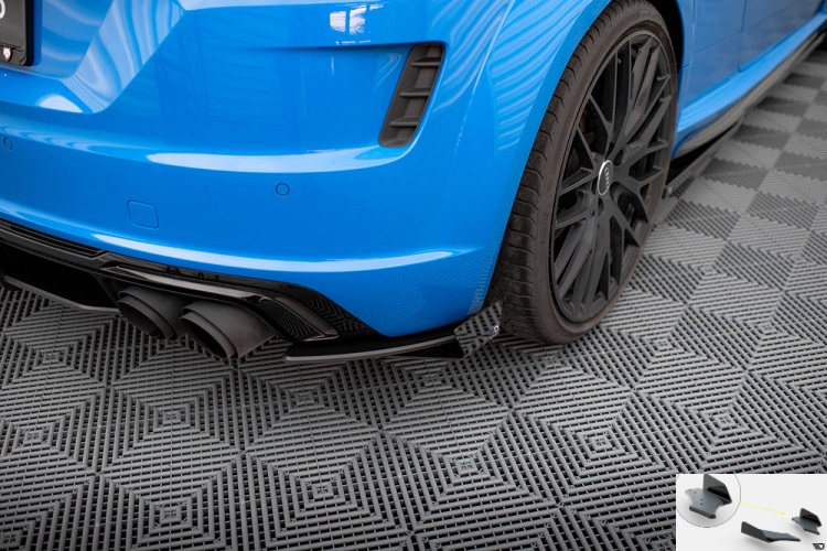Coppia appendici diffusore posteriore street pro nere con flaps neri lucidi Maxton Design per Audi TTS 8S restyling (2018-2023). Il prodotto viene fornito in rifinitura nera opaca racing con flaps neri lucidi.