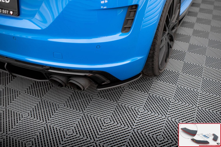 Coppia appendici diffusore posteriore street pro nere con bordo rosso Maxton Design per Audi TTS 8S restyling (2018-2023). Il prodotto viene fornito in rifinitura nera opaca racing con bordo rosso. Il materiale con il quale viene prodotto è ABS di qualità e testato per un'elevata resistenza agli urti. Con certificazione TUV.