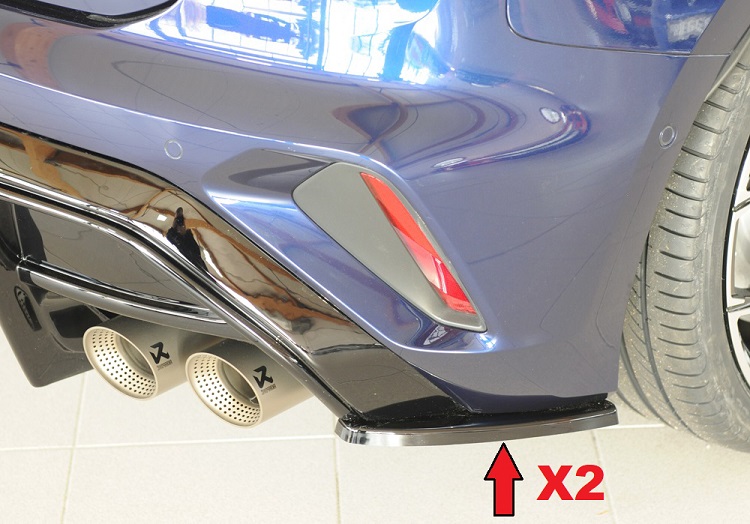 Coppia appendici diffusore posteriore sportivo di colore nero lucido, compatibili con Audi A3 8Y S-Line e Audi S3 8Y restyling (06.24-) sportback. Il prodotto è compatibile solo con il diffusore sportivo Rieger Tuning. Il materiale con il quale viene prodotto è ABS di qualità, made in Germany, e testato per un'elevata resistenza agli urti.