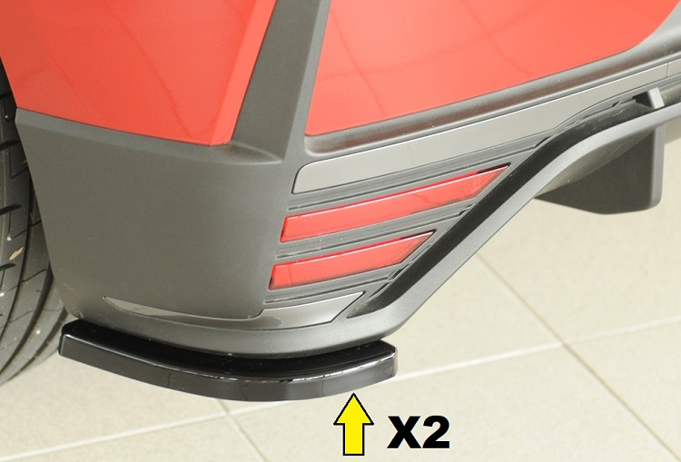 Coppia appendici diffusore posteriore sportivo di colore nero lucido, compatibili con Hyundai I20N MK3 (2021-) inclusa performance. Il prodotto è compatibile solo con il diffusore sportivo Rieger Tuning. Il materiale con il quale viene prodotto è ABS di qualità, made in Germany, e testato per un'elevata resistenza agli urti.