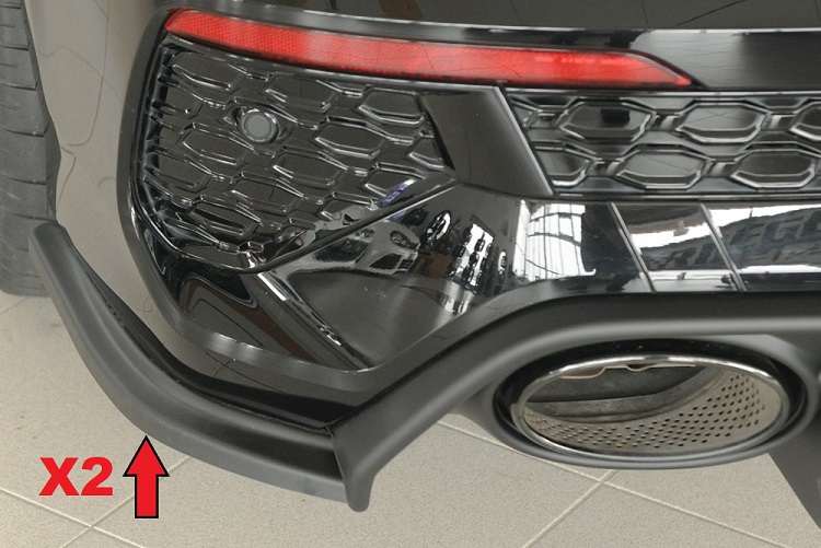 Coppia appendici diffusore posteriore sportivo di colore nero opaco grezzo e che richiedono verniciatura prima del montaggio, compatibili con Audi RS3 8Y pre-restyling (06.21-05.24) sportback. Il prodotto è compatibile solo con il diffusore sportivo Rieger Tuning. Il materiale con il quale viene prodotto è ABS di qualità, made in Germany, e testato per un'elevata resistenza agli urti.