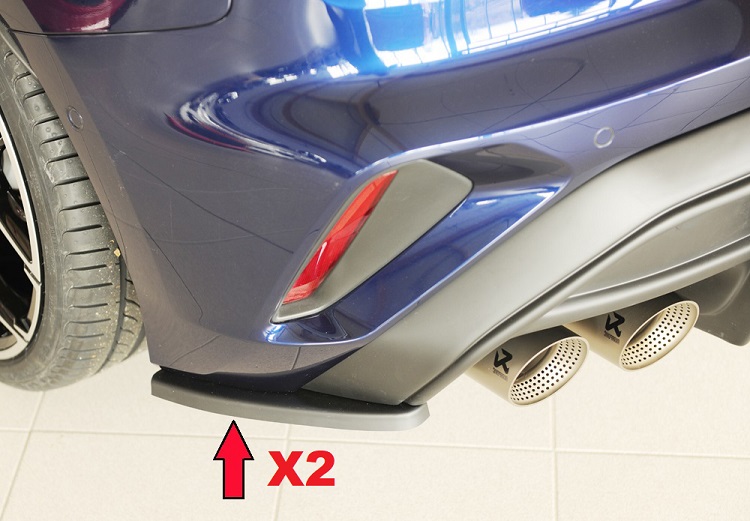 Coppia appendici diffusore posteriore sportivo di colore nero opaco grezzo e che richiedono verniciatura prima del montaggio, compatibili con Audi A3 8Y S-line e Audi S3 8Y restyling (06.24-) sportback. Il prodotto è compatibile solo con il diffusore sportivo Rieger Tuning. Il materiale con il quale viene prodotto è ABS di qualità, made in Germany, e testato per un'elevata resistenza agli urti.