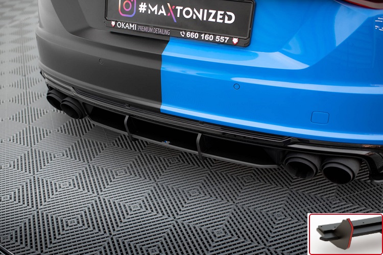 Sottodiffusore Street Pro Maxton Design per Audi TTS 8S restyling (2018-2023). Il prodotto è realizzato in tonalità nera opaca racing con bordino verticale rosso. Non è necessaria alcuna modifica, va montato direttamente sulla propria auto. Il materiale con il quale viene prodotto è ABS di qualità e testato per un'elevata resistenza agli urti. Con certificazione TUV.