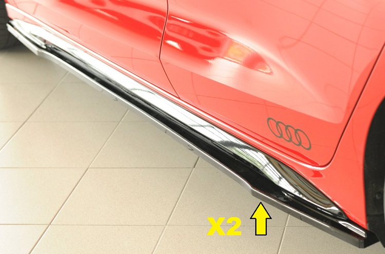 Coppia sottominigonne Rieger Tuning per Audi A3 8Y pre-restyling (11.2019-05.2024) e restyling (06.2024-) sportback (5 porte) e sedan con pacchetto estetico esterno S-Line. Le sottominigonne sono di colore nero lucido. Le sottominigonne vengono prodotte in ABS di qualità made in Germany. L'articolo è dotato di omologazione ABE.