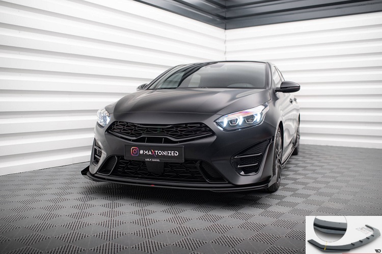 Lama sottoparaurti anteriore con flaps modello street pro Maxton Design per Kia Ceed GT Mk3 Facelift (2022-); Kia Proceed GT Facelift MK3 (2022-) e Kia Proceed GT-Line (2022-). Lo splitter viene fornito di colore nero opaco racing di spessore 10mm con flaps già verniciati di colore nero lucido e pronto al montaggio grazie al suo kit (composto da rivetti e rondelle) e dal foglio con le istruzioni. Non è necessaria alcuna modifica, va montato direttamente sulla propria auto. Il materiale con il quale viene prodotto è ABS di qualità e testato per un'elevata resistenza agli urti. Con certificazione TUV.