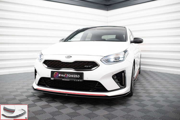 Lama sottoparaurti anteriore modello street pro Maxton Design per Kia Proceed GT MK1 (2019-2022) e Kia Ceed GT MK3 (2018-2022). Lo splitter viene fornito di colore nero opaco racing di spessore 10mm con bordo rosso e pronto al montaggio grazie al suo kit (composto da rivetti e rondelle) e dal foglio con le istruzioni. Non è necessaria alcuna modifica, va montato direttamente sulla propria auto. Il materiale con il quale viene prodotto è ABS di qualità e testato per un'elevata resistenza agli urti. Con certificazione TUV.