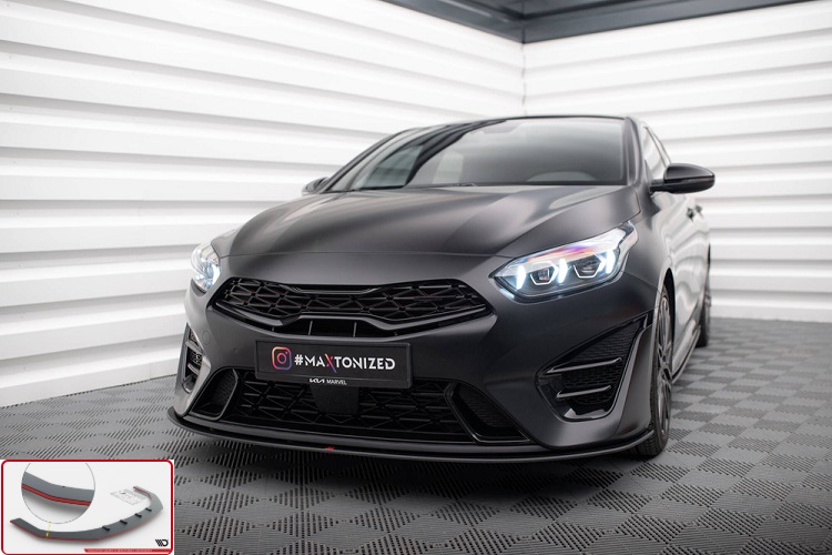 Lama sottoparaurti anteriore modello street pro Maxton Design per Kia Ceed GT Mk3 Facelift (2022-); Kia Proceed GT Facelift MK3 (2022-) e Kia Proceed GT-Line (2022-). Lo splitter viene fornito di colore nero opaco racing di spessore 10mm con bordo rosso e pronto al montaggio grazie al suo kit (composto da rivetti e rondelle) e dal foglio con le istruzioni. Non è necessaria alcuna modifica, va montato direttamente sulla propria auto. Il materiale con il quale viene prodotto è ABS di qualità e testato per un'elevata resistenza agli urti. Con certificazione TUV.