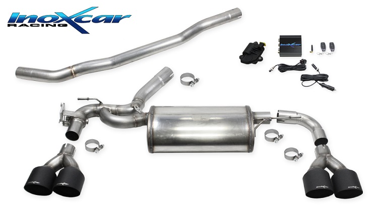 Finale sportivo silenziato con valvola Racing Black Inoxcar in acciaio inox per BMW Serie 1 F40 116i 1.5T 109cv e 118i 1.5T 136/140cv per motori B38A15A Euro 6D-TEMP-EVAP-ISC / Euro 6D-ISC-FCM e motori B38A15F Euro 6D-ISC-FCM / Euro 6E. Questo scarico va a sostituire il finale di serie con un silenziatore sportivo al fine di migliorare il sound. Non possiede omologazione CEE. Diametro a quadrupla uscita sdoppiata sinistra e destra 100mm con terminalini racing black ceramic, con integrato kit valvola apertura/chiusura con funzionamento con il motorino elettrico e telecomando. Per montaggio su filtro OPF / GPF originale ordinare separatamente l’adattatore AD.BMF40.04); per montaggio su tubo anteriore INOXCAR ordinare separatamente l’adattatore AD.BMF40.05. Necessita sottoparaurti Maxton Design. Tubazione diametro 65mm e raccordo ingresso diametro 65mm. Tutti i prodotti Inoxcar (100% Made in Italy) vengono realizzati utilizzando solo i migliori materiali come l'acciaio Aisi 304, con l'impiego di macchinari all'avanguardia, nonchè un banco prova a rulli al fine di verificare la performance dello scarico una volta montato sull'auto.