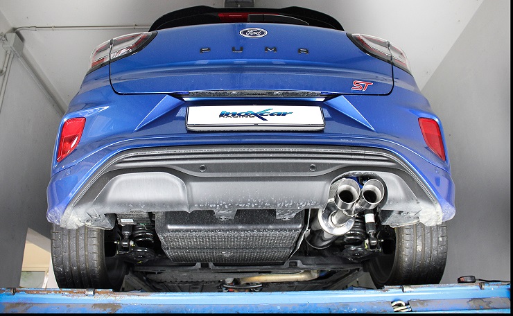 Finale sportivo silenziato Racing Inoxcar in acciaio inox per Ford Puma ST 1.5 Turbo benzina Ecoboost 200cv (2020-). Questo scarico va a sostituire il finale di serie silenziato con un silenziatore sportivo al fine di migliorare il sound. Non possiede omologazione CEE. Diametro uscita doppia 80mm racing, con taglio trasversale senza bordino e con lucidatura a specchio. Diametro tubazione 63,5mm, diametro raccordo interno entrata 60mm. Si precisa che il montaggio del seguente scarico va ad escludere la valvola di serie. Per eliminare l'accensione della spia gestione valvola è consigliabile la rimappatura della centralina oppure l'installazione dell'emulatore (codice EM.PUMA) presente sul nostro sito. Tutti i prodotti Inoxcar (100% Made in Italy) vengono realizzati utilizzando solo i migliori materiali come l'acciaio Aisi 304, con l'impiego di macchinari all'avanguardia, nonchè un banco prova a rulli al fine di verificare la performance dello scarico una volta montato sull'auto.